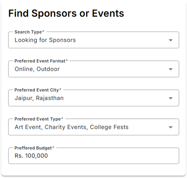 Sponsors connect only with verified event organizers, ensuring authentic opportunities and higher ROI. Perfect for brands looking to sponsor events in India.